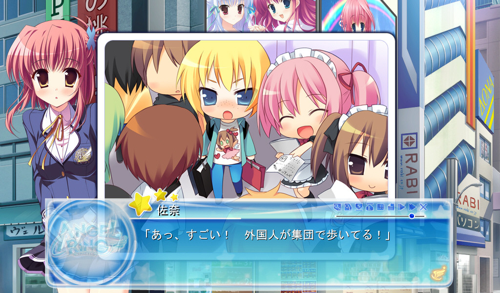 The game is based around two concepts: ‘love angel’ and ‘angel ring’. Love angels come from heaven to support love between people. They don’t have any special abilities except for flying. They feel a great sense of responsibility towards 2D maniacs like Satoru. If there is someone who loves someone else, but doesn’t have the courage to take the next step, the ‘angel ring’ floating around the love angel’s neck will begin to glow. It helps the love angel realize people’s feelings.