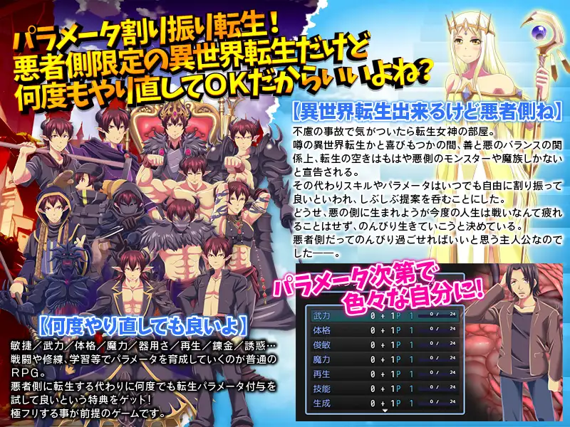 His joy at thinking he’s been reincarnated into the rumored other world is short-lived, as he is told that due to the balance between good and evil, the only reincarnation spaces available are for monsters and demons on the evil side.