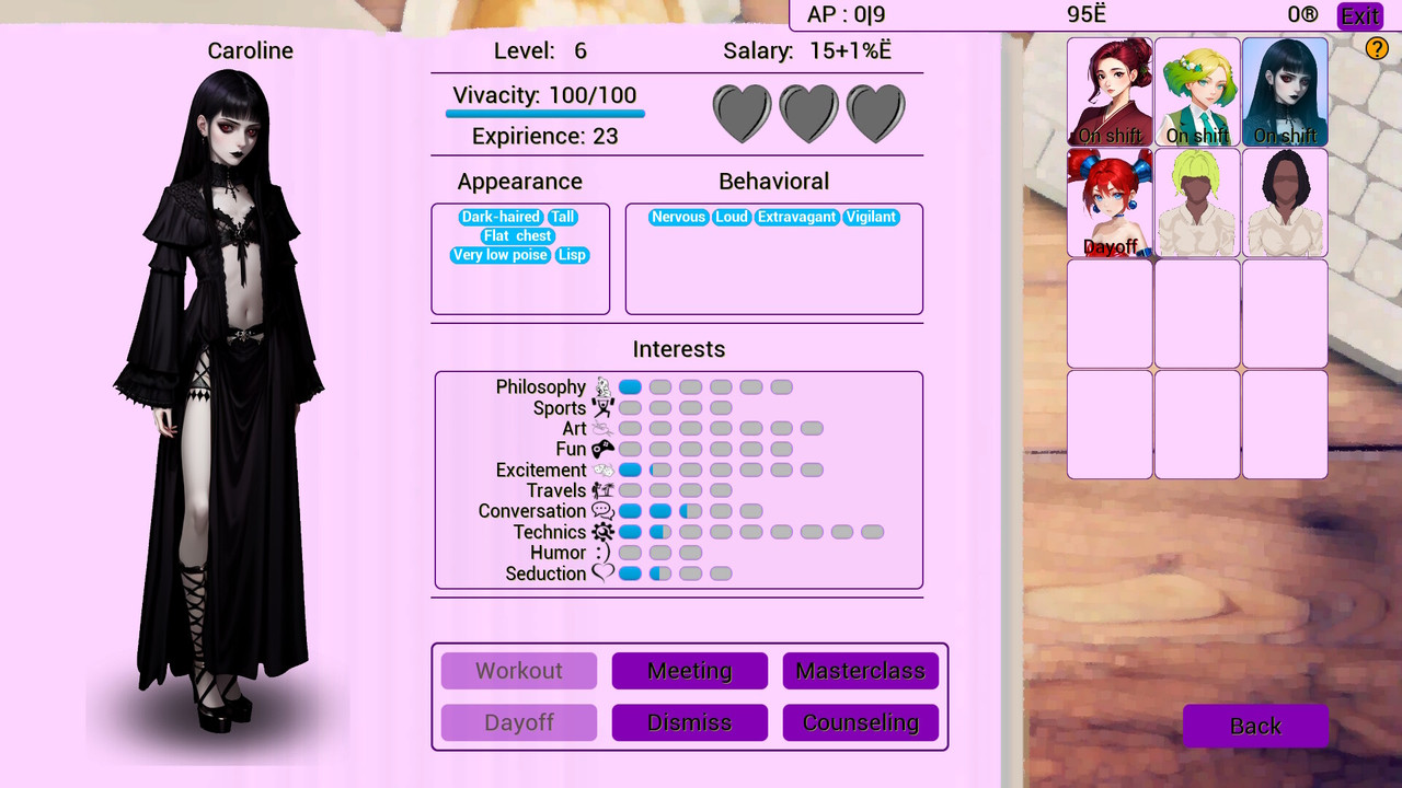 Cocktail Girl Service is a simple cafe simulator where you are a cafe manager during the day and in the evenings you get close to the waitresses, take them on dates or develop the cafe.​