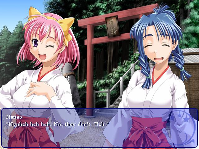 You are Kensuke Tsukikage, the son of a family that runs the famous Tsukigake Shinto Shrine. One day your grandfather, chief priest of the shrine, introduces you to a beautiful girl: Koruri Hanayashiki, a young shrine-maiden-in-training who will be studying here. It’s quite an honor to be able to train at such an ancient and famous religeous site as your shrine. A party is held withyour childhood friends Nanao and Shiina to welcome Koruri-chan.