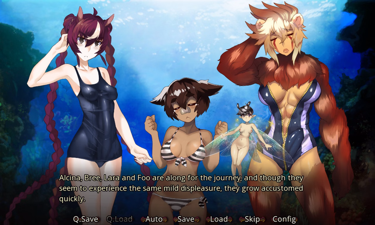 Mutiny!! is set in a world of fantasy, both sexual and adventurous. A realm where airships can sail among the clouds as well as the sea, and they even enter the flogiston to journey to other realms. There’s treasure spread out over many these realms if you’re brave or curious enough to find it. At the bottom of the sea or within mysterious ruins, protected by curious animated guardians. The world of Mutiny!! is in every way ‘fun’, silly and sexy as you imagine!