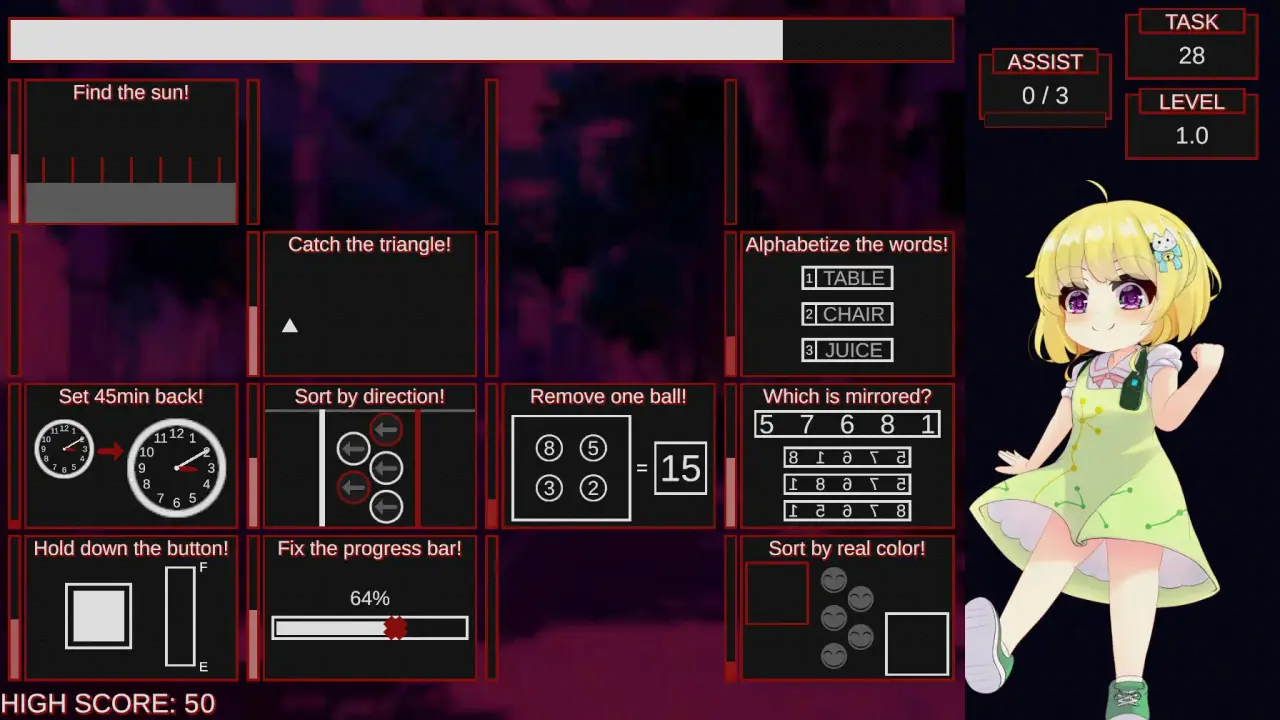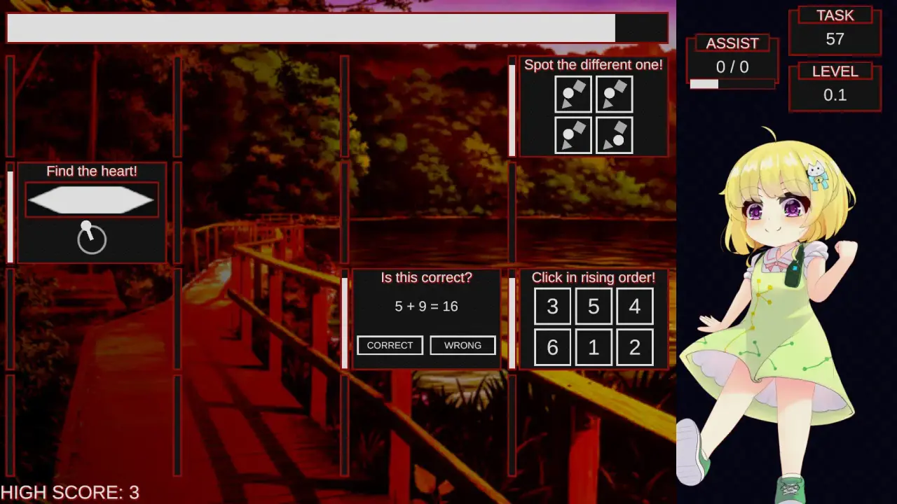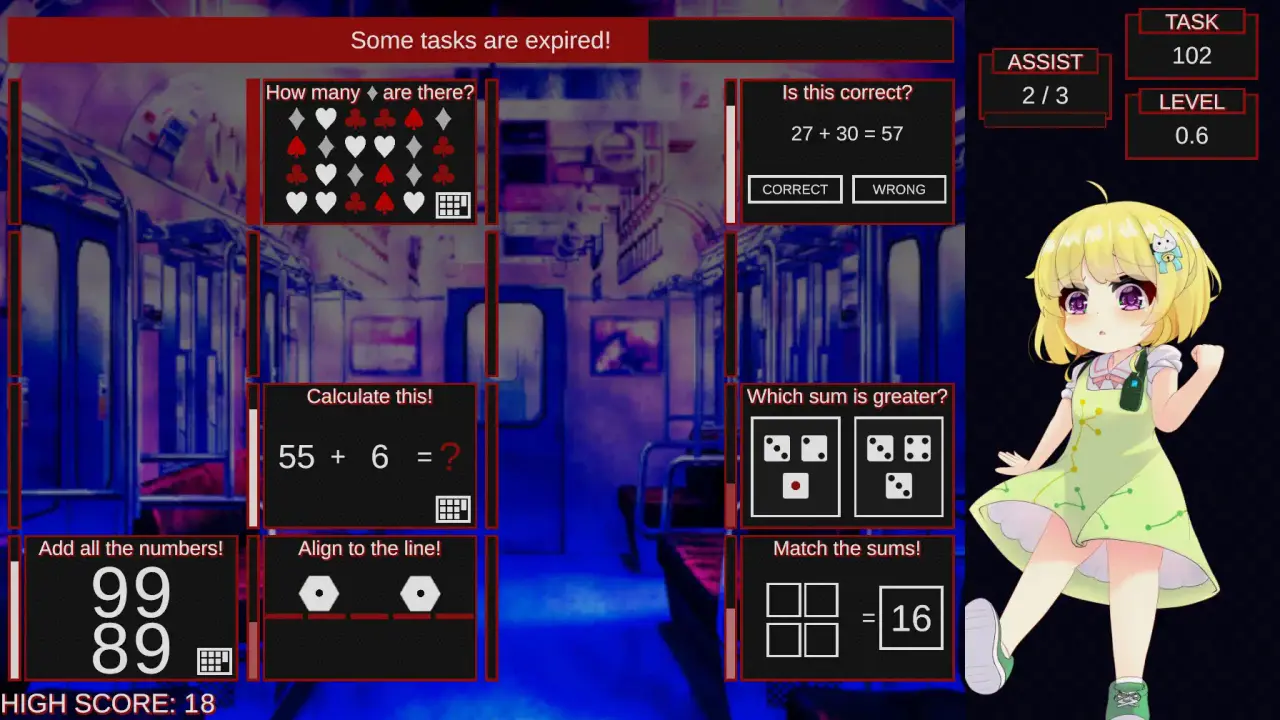 If the time runs out without being able to complete the task, the game is over.