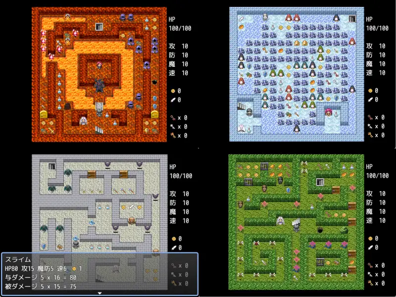 A WWA-style puzzle dungeon RPG. All the girls have big breasts.