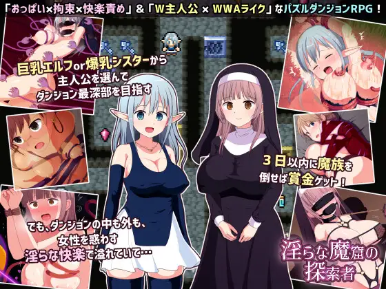 Choose between two protagonists with different abilities: Sherry (a busty elf magician) or Serena (a busty sister), and aim to reach the deepest part of the cave where the demons have been sealed within three days.