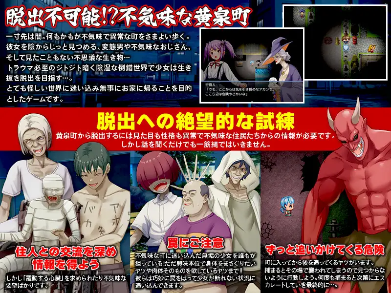 Original Title : 黄泉町血だまり小道 -脱出不可能で不気味な町に迷い込んだ少女の物語-